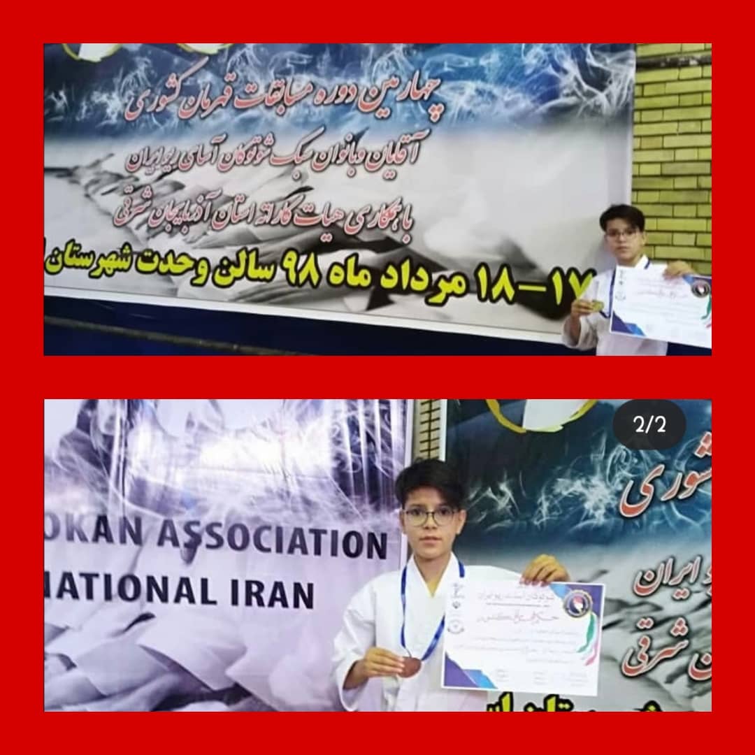 کسب مقام سوم در مسابقات قهرمانی کشور سبک شوتوکان آسای ریو ایران که در روز جمعه مورخ 18 مرداد 1398 در استان آذربایجان شرقی شهر تبریز شهرستان اسکو در سالن وحدت برگزار گردید.